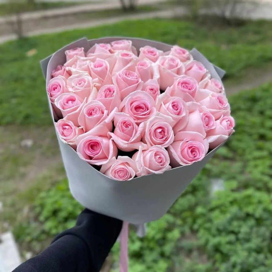На фото букете из 31 розовой розы. В составе: роза 31 шт, крафт-бумага 1 шт, атласная лента 1 шт, . Все цветы свежие и ароматные, букет красиво оформлен и отлично подходит для подарка. Доступна доставка цветов или самовывоз.