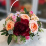 На фото корзина с пионами и розами. В составе: пион 1 шт, роза 5 шт, кустовая роза 2 шт, хризантема кустовая 2 шт, писташ 4 шт, эвкалипт 2 шт, корзина (s) 1 шт, атласная лента 1 шт, . Все цветы свежие и ароматные, букет красиво оформлен и отлично подходит для подарка. Доступна доставка цветов или самовывоз.
